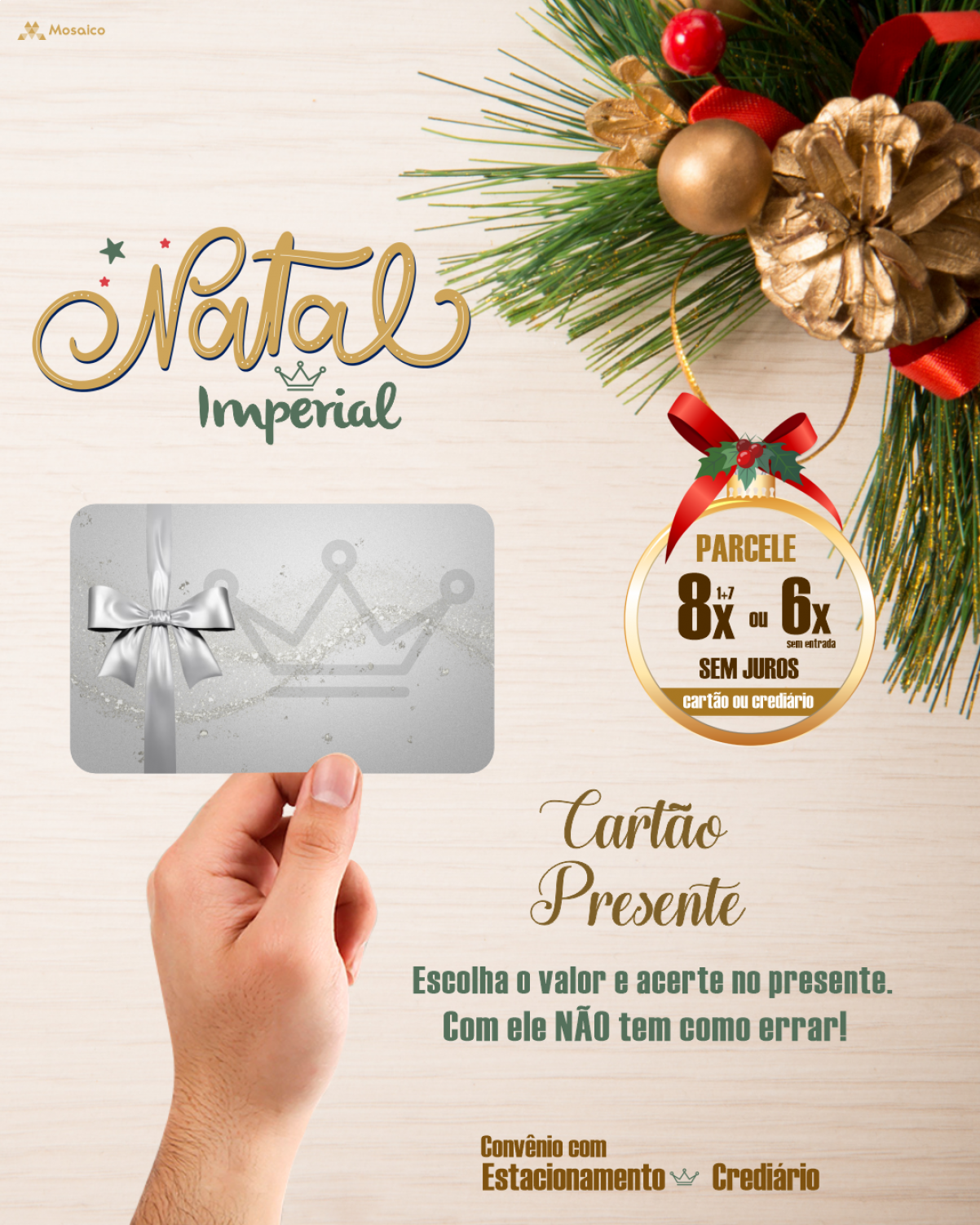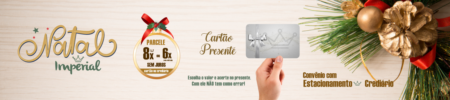 Para quem deseja presentear sem erro, contamos com o Cartão Presente Imperial. Você escolhe o valor e quem recebe tem total liberdade para vir até a loja e selecionar o que mais gostou. Um presente prático, versátil e muito procurado nesta época do ano.